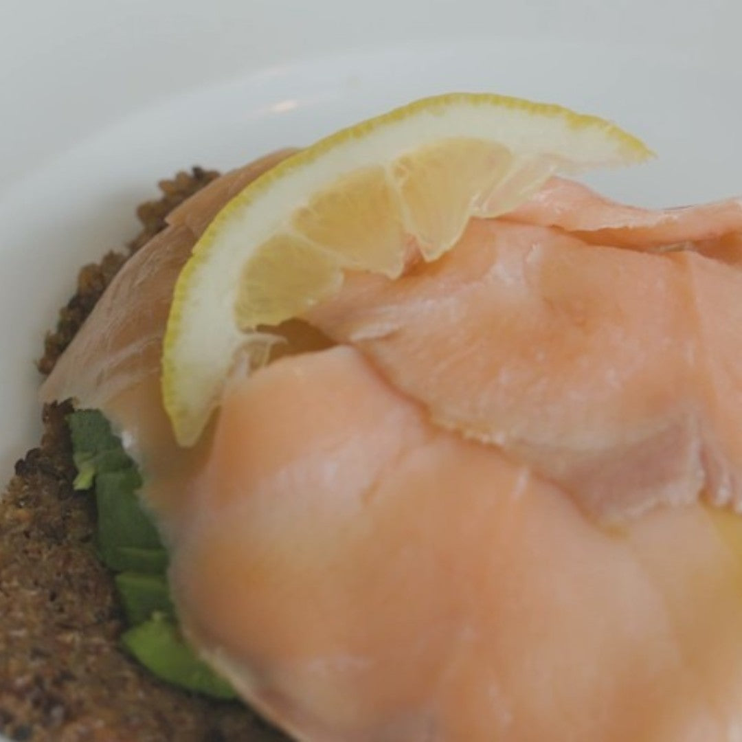 Tostada de aguacate con salmón ahumado y limón