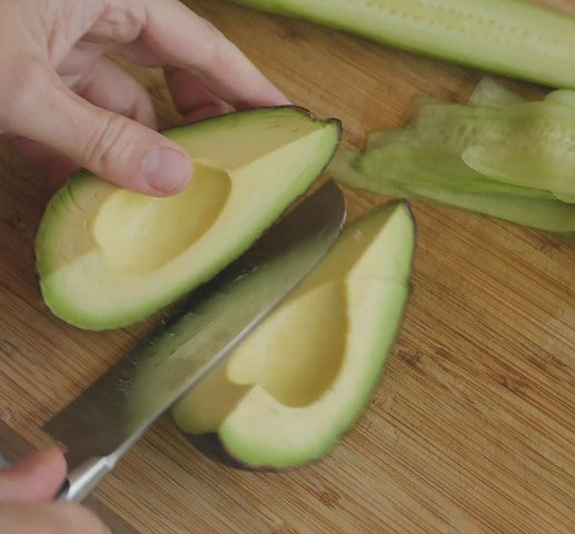 Cut avocados into quarters, peel and pit